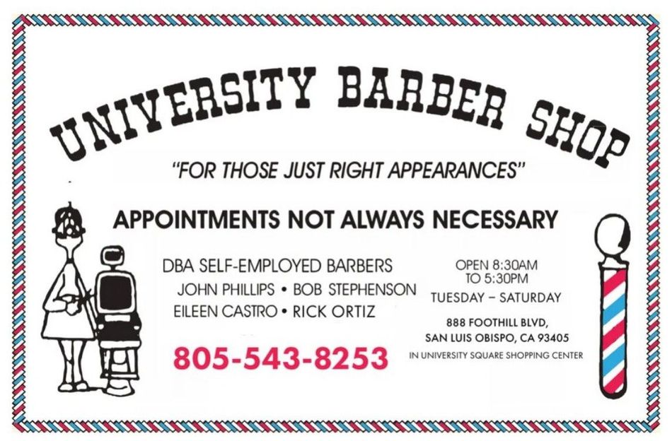 University Barber Shop was opened in 1957 and has been serving the locals and students in and around San Luis Obispo, CA ever since. We are committed to providing the best haircuts for men, women, and children for that "just-right appearance." Look and feel your best with our haircuts!